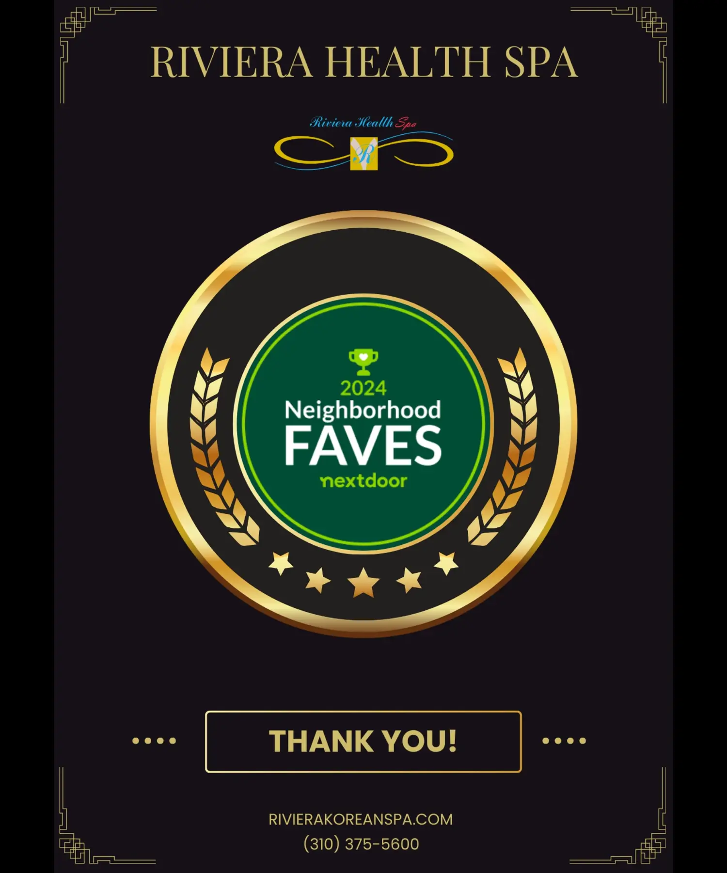 Riviera Health Spa is thrilled and honored to announce that we've been voted Neighborhood Fave for Best Spa in Torrance on Nextdoor for the second year in a row! 🏆🏆
